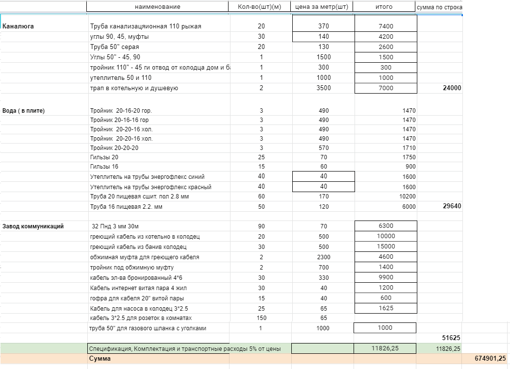 Вода, кабеля электрики, кабель на насос, дренажные трубы для системы водоподготовки + кабель или трубу для компрессора на септик.